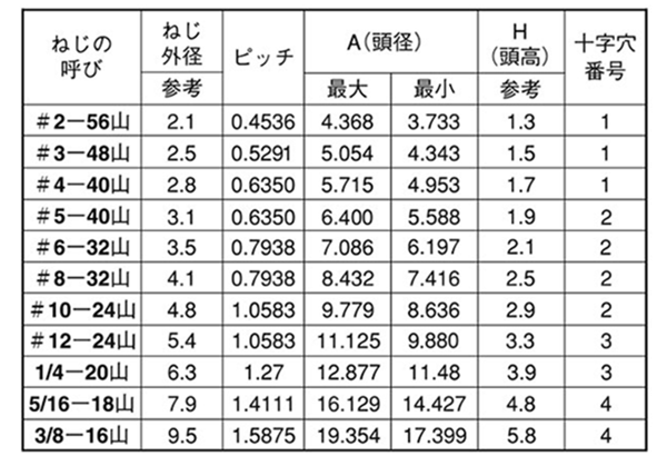 | #2-56UNCx1/4 (約6.4mm) 000200317020802000 |