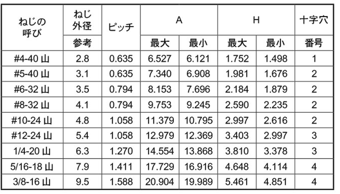 | #4-40UNCx3/8 (約9.5mm) 000200337040803000 |