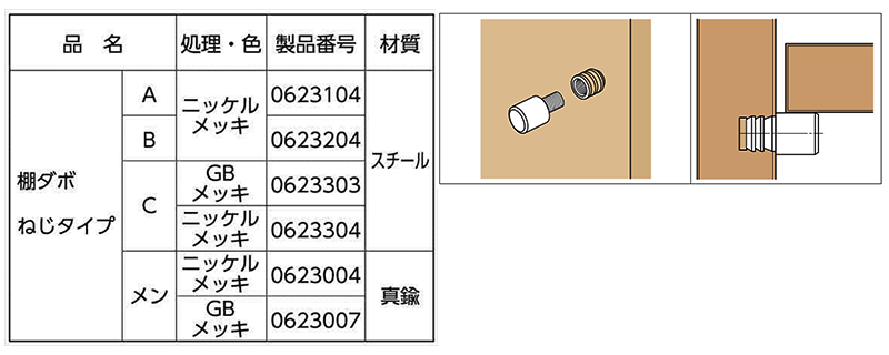 黄銅 棚ダボ ねじタイプ (メン) の商品一覧