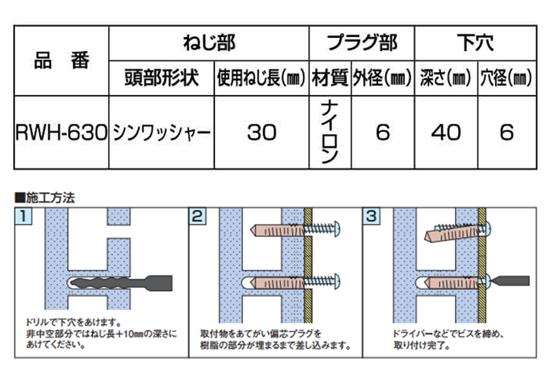 偏心プラグ シンワッシャ頭 (ナイロン樹脂プラグ) の商品一覧