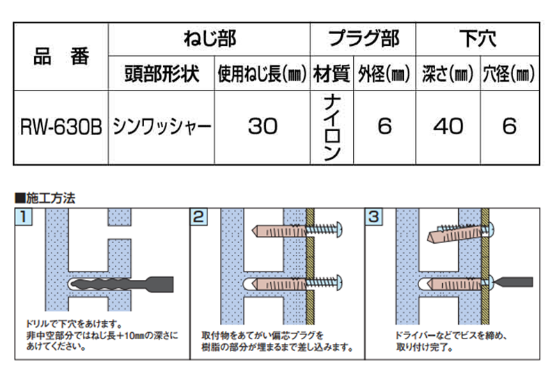 偏心プラグ シンワッシャ頭 (ナイロン樹脂プラグ)(ドリル付)(パック品) の商品一覧