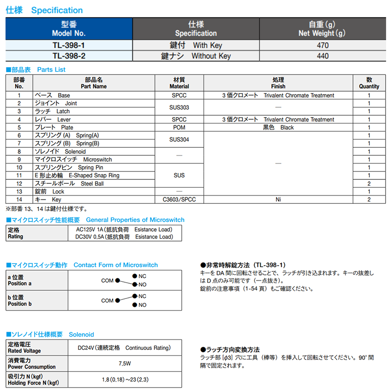 栃木屋 ソレノイドラッチ(可変型) TL-398-2 の商品一覧