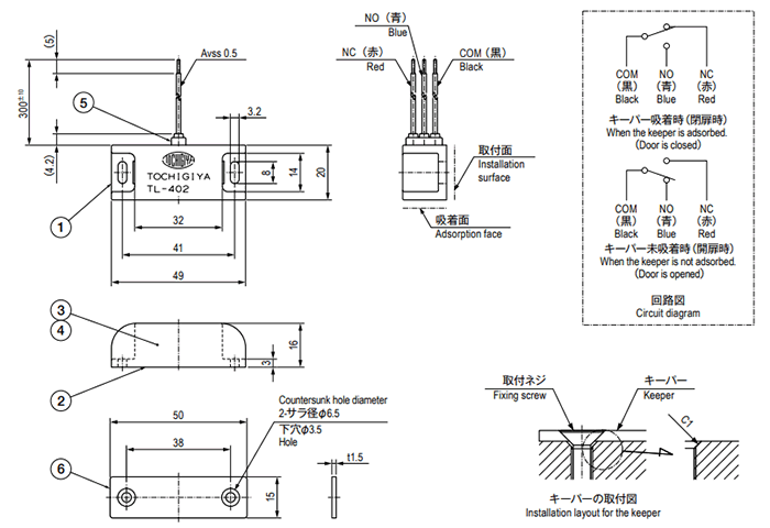 栃木屋 スイッチ付きマグネットキャッチ(防塵型) TL-402