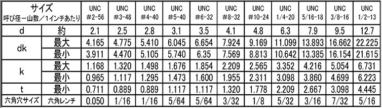 鋼 六角穴付き皿ボルト(皿頭 キャップ)(UNCユニファイ並目ねじ)