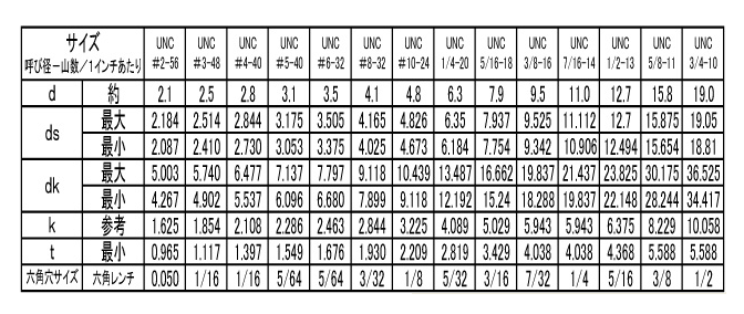 | #2-56UNCx3/4 (約19mm) A00020307020806000 |