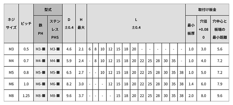 | PH-M3-8 (p=0.5) ピッチ=0.5 F100S6000030008003 |