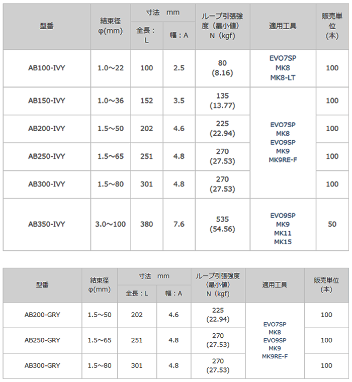 ABタイ 耐候性カラータイ(66ナイロン)AB-IVY