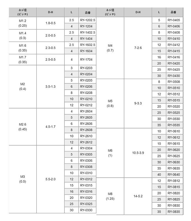 RY-0304 (M3 p=0.5) ピッチ=0.5 L000RY000304000000 ![]() |