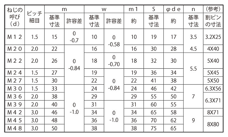 鋼 S45C(H) 溝付きナット(キャッスルナット)(高型)(2種)(その他細目) の商品一覧