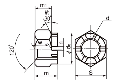 鋼 S45C(H) 溝付きナット(キャッスルナット)(高型)(2種)(その他細目)