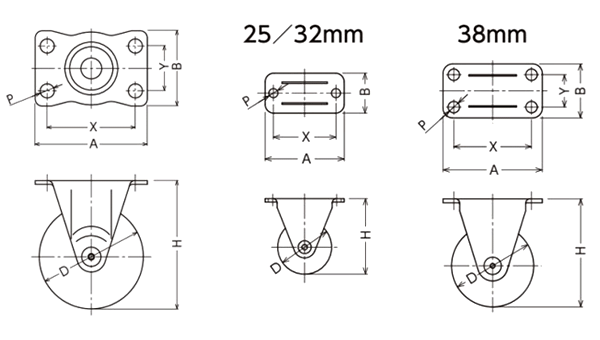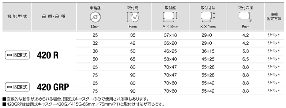 ハンマーキャスター 汎用タイプ 420R (φ25~75)(プレート式・固定)(三価クロメート)