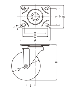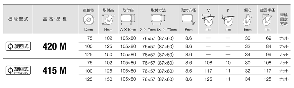 ハンマーキャスター420M (φ75~125)(プレート式・自在)(三価クロメート)(取付座寸法-自在固定共通)