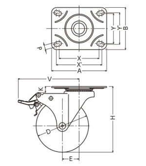 ハンマーキャスター415M (φ75~125)(プレート式・自在・トータルロック付)(三価)(取付座寸法-自在固定共通)