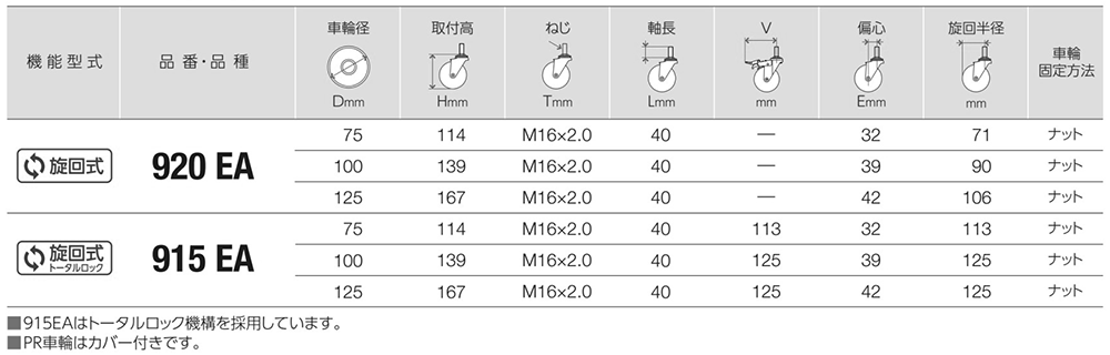 ハンマーキャスター 920EA (φ75~125)(ねじ込み式・自在)(M16 p=2.0)(クロームメッキ) の商品一覧