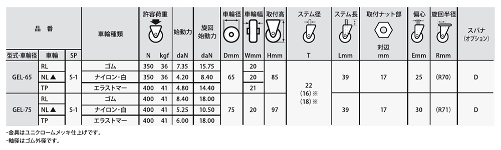 GEL-75 NL S-1 (ステム径T22)(ナイロン車・白) X000GELS0075204000 ![]() |
