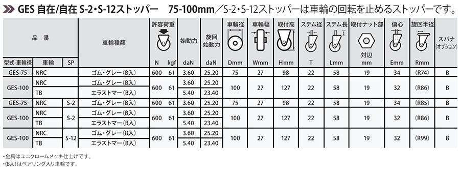 GES-100NRC S-2 (ステム径T22)(ゴム車・グレー・B入) X000GESS0100059000 ![]() |