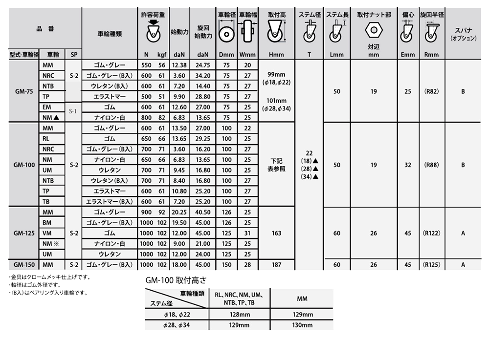 GM-100 NM S-2 (ステム径T22)(ナイロン車・白) X000GM0S0100202000 ![]() |