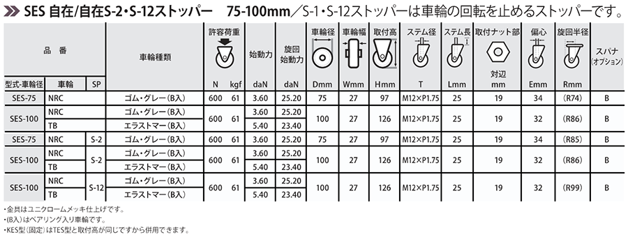 ナンシン 微音キャスター SES (ねじ式・自在・ストッパーS12) の商品一覧