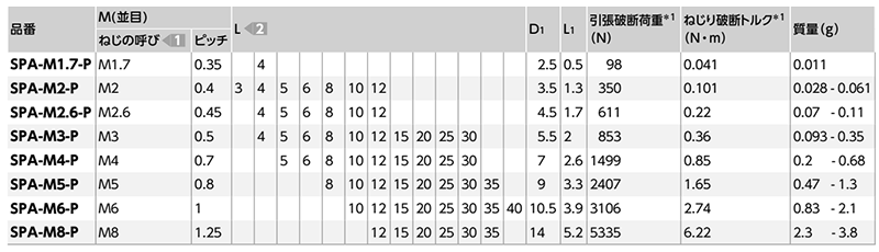 SPA-M2.6-8-P (p=0.45)(50入) ピッチ=0.45 YN0002350026008000 ![]() |